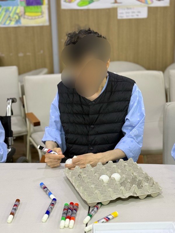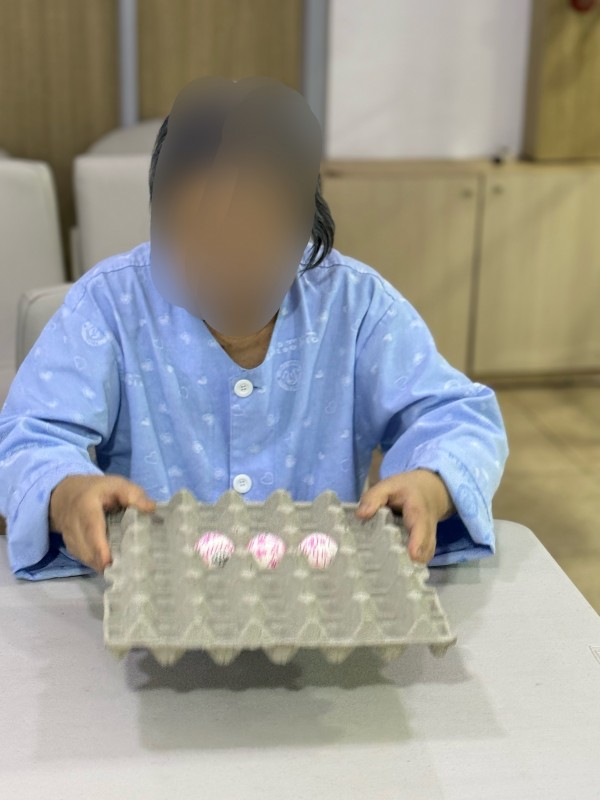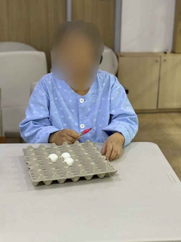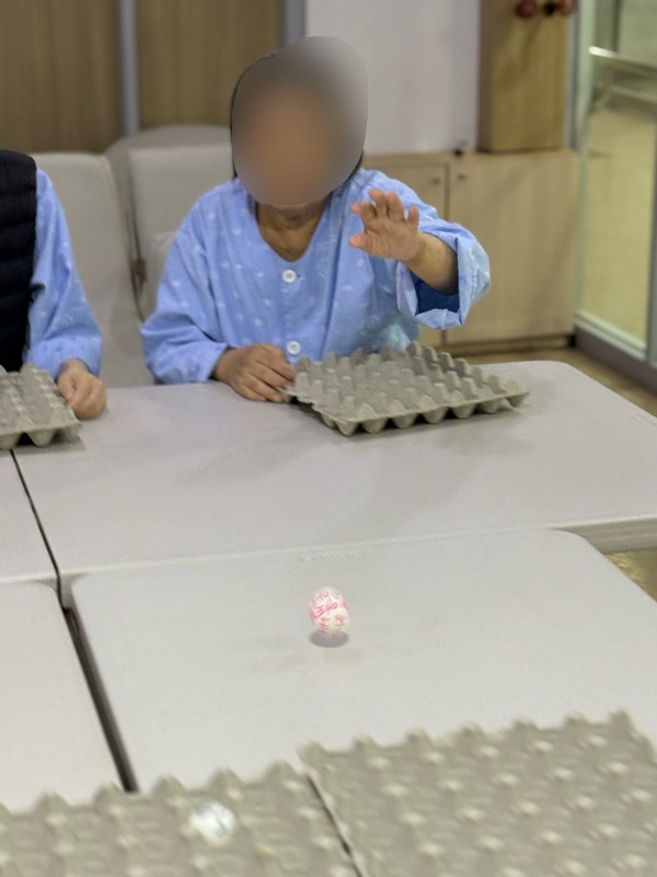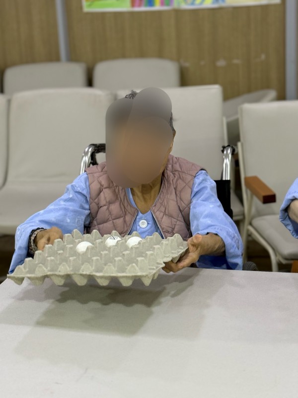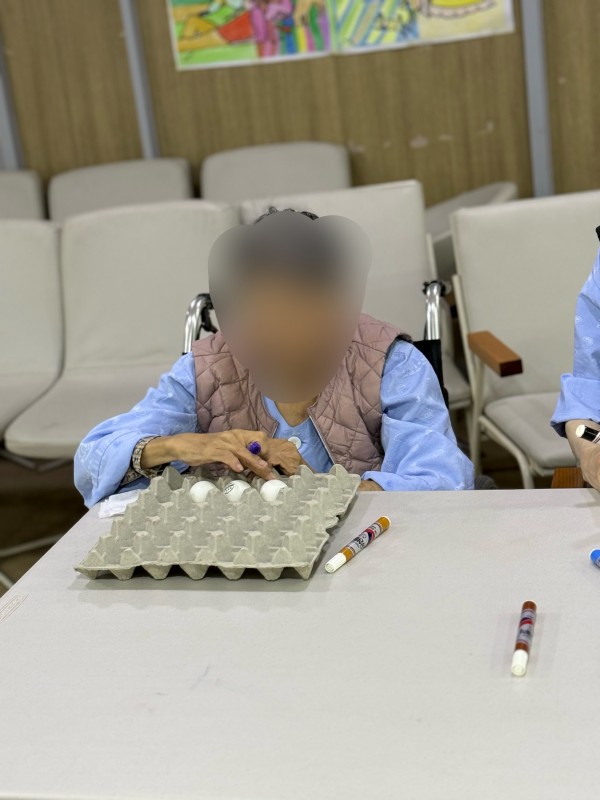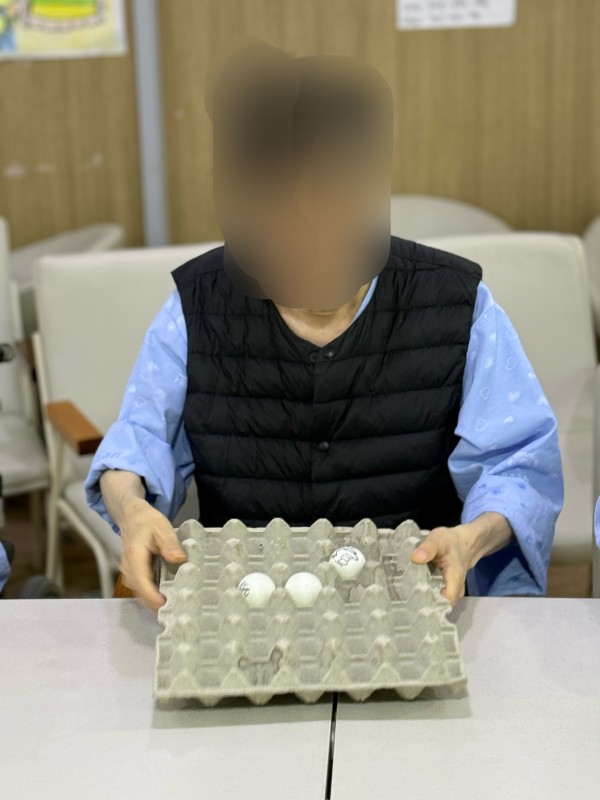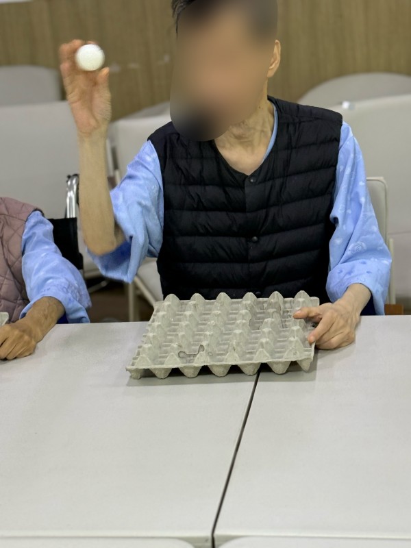 어르신들께서 탁구공을 꾸미며 집중력을 보여주셨고 직접꾸민 탁구공을 계란판에 옮기며 손을 움직여 옛날 그시절 키에 쌀을 담고 모래와 돌을 걸러내듯 탁구공이 떨어지지 않게 움직임을 조절하고 집중력을 높이는 활동으로 간단한 도구이지만 웃음과 이야기가 가득한 시간이 되었습니다.