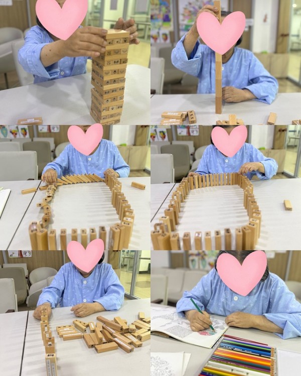 1.젠가 놀이를 통해 어르신들의 집중력과 소근육 조절 능력 향상