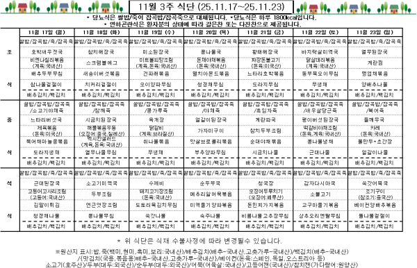 "금주의 식단 메뉴를 확인 할 수 있습니다."