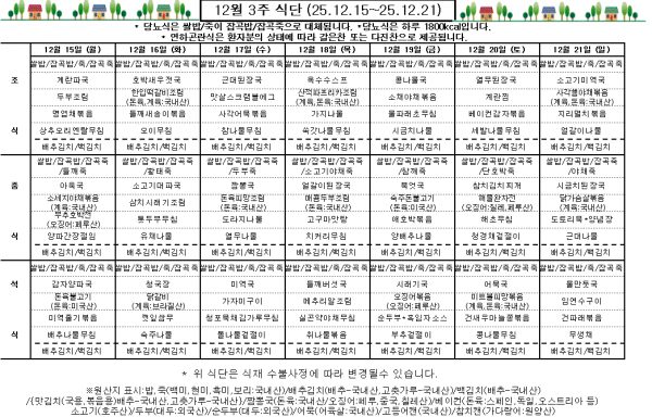12월 3주 식단표