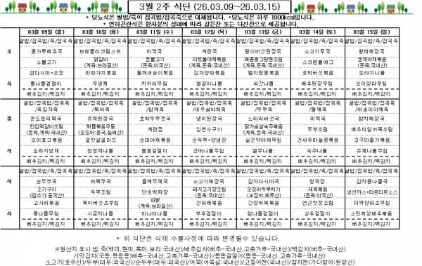 "금주의 식단 메뉴를 확인 할 수 있습니다."