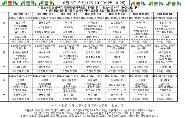"금주의 식단 메뉴를 확인 할 수 있습니다."