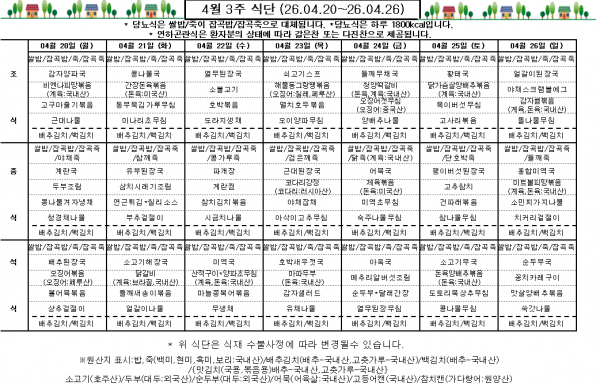 4월 3주 식단표