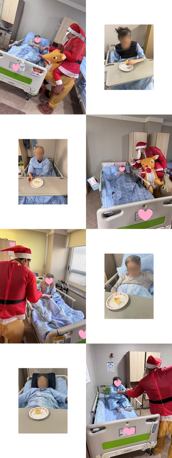 경관식 어르신을 제외한 모든 어르신들께 케이크를 나누어 드리며 함께 크리스마스를 기념했고, 병동에서 낮과 밤을 가리지 않고 헌신해주시는 의료진 선생님들과 간병인분들께도 감사의 마음을 담아 케이크를 함께 나누었습니다.