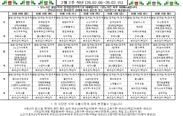 "금주의 식단 메뉴를 확인 할 수 있습니다."