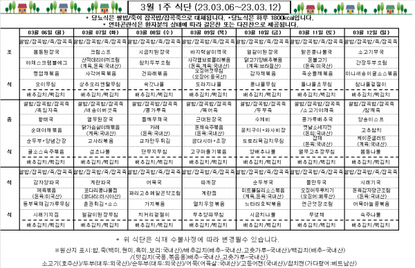 3월 1주 식단표