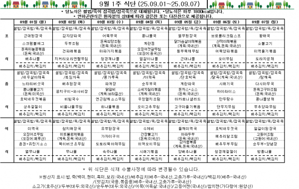 9월 1주 식단표