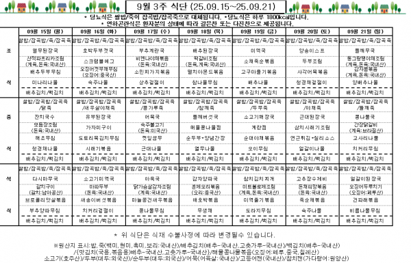 "금주의 식단 메뉴를 확인 할 수 있습니다."