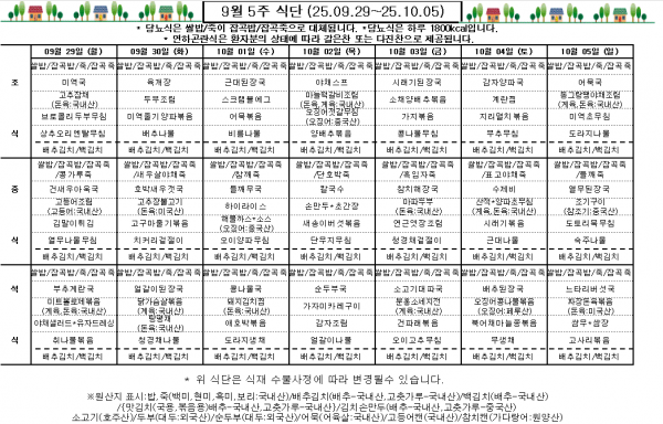 "금주의 식단 메뉴를 확인 할 수 있습니다."