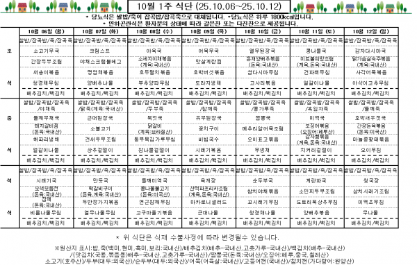 "금주의 식단 메뉴를 확인 할 수 있습니다."