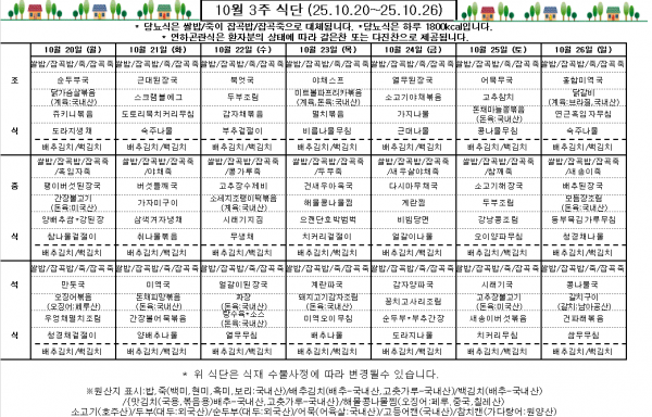 "금주의 식단 메뉴를 확인 할 수 있습니다."