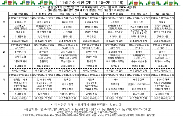 "금주의 식단 메뉴를 확인 할 수 있습니다."