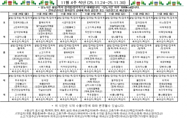 11월 4주 식단표