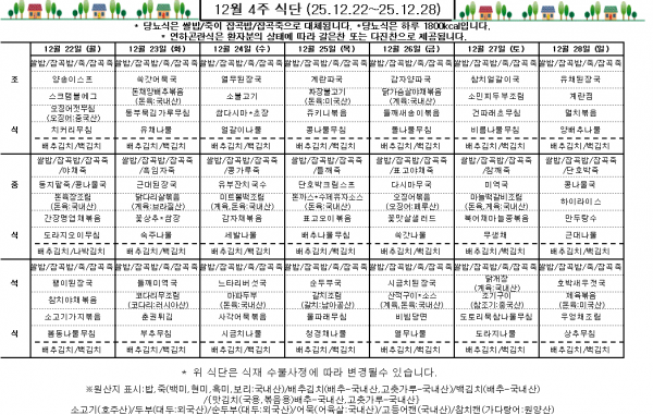 "금주의 식단 메뉴를 확인 할 수 있습니다."