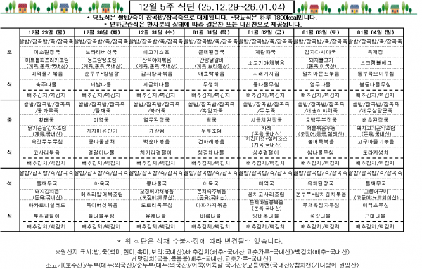 12월 5주 식단표