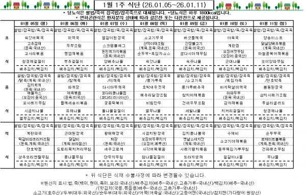 "금주의 식단 메뉴를 확인 할 수 있습니다."