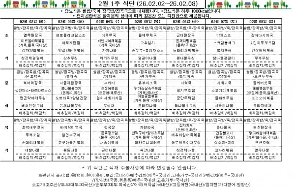 2월 1주 식단표
